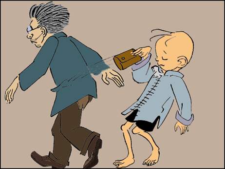 三毛迎着老先生走去, 就在两人错身的工夫, 三毛一声不